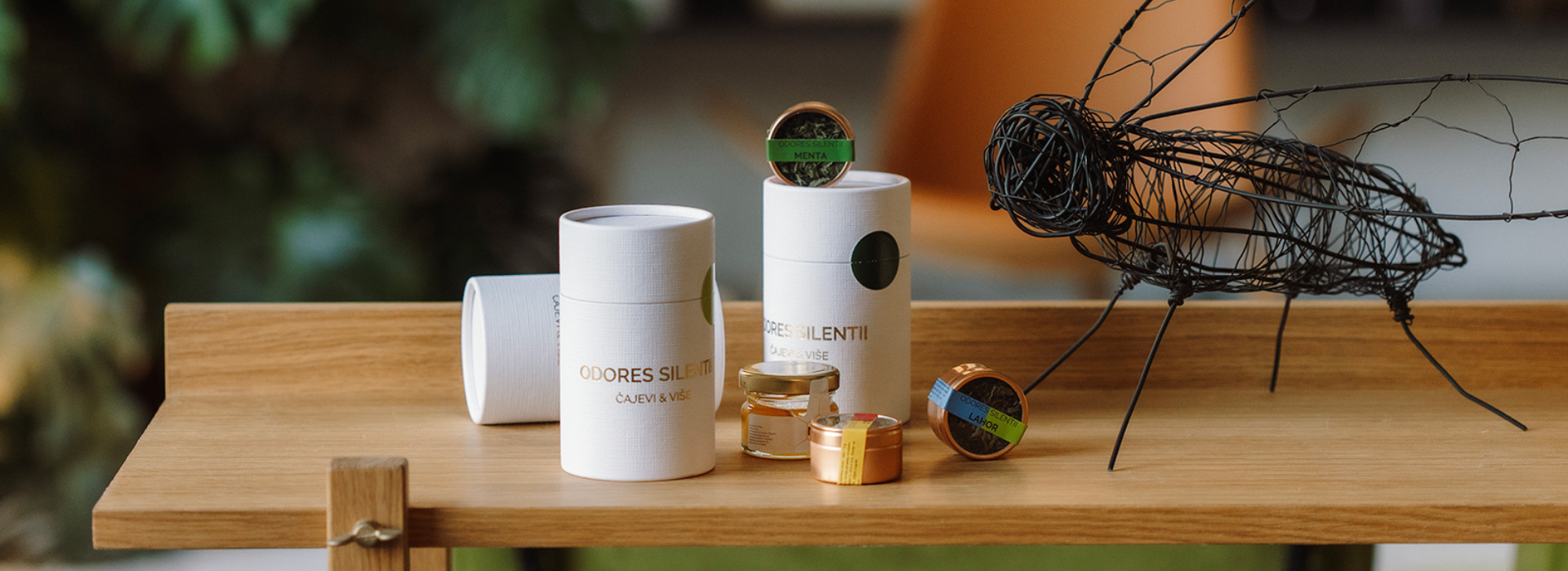 ODORES SILENTII nudi trenutke uživanja kroz naše organski uzgojene hrvatske čajeve, posluživane u ručno izrađenim setovima. Osnovan 2018. kao prvi hrvatski brand craft čajeva, cilj nam je stvaranje hrvatske kulture čaja kroz ceremoniju pripreme, gdje mirisi, boje i okusi omogućuju da zastanete, uživate u bilju i vrijednosti susreta s drugima ili sa sobom. Pažljivo biramo najkvalitetnije dijelove biljke, visokokvalitetno posuđe i jedinstvene komade drveta za setove, ističući njihovu prirodnu ljepotu, a cijeli proces posluživanja čaja je hrvatski proizvod zaštićen kod Državnog zavoda za intelektualno vlasništvo (D20240006).